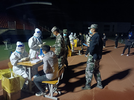 为进一步强化新型冠状肺炎疫情防控措施,织密织牢校园联防联控防疫网络,切实保障广大师生的健康安全。我校遵照上级部署,迅速行动,于2021年10月28日晚在Beat365中国唯一官方网站北校区操场连夜进行核酸检测工作。我校八一学社全体成员第一时间赶到检测点,助力全校师生高校完成核酸检测工作。
