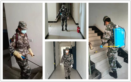 在校团委老师的领导下,按照分配好的值班表按时到岗,及时监督进出宿舍楼人员的健康码,并对出现异常的情况及时向组长或领导报备。八一学社成员如天降雄兵,只待上级一声令下,八一勇士无男女,巾帼须眉皆英雄。全体成员一身戎装束裹始终奔赴在学校抗疫战场的最前线。“战士们”如泰山一样矗立在各个公寓门前,认真仔细的查看每一位团学的健康码,11月13日八一学社团学干部学生对校内各个集中留观点内进行消杀工作。八一学社成员张轲同学表示:“我们虽不能像医护人员、公安干警冲在一线,但作为新时代大学生,应听从指挥,不恐慌不添乱,用科学沉稳的态度面对疫情,共渡难关。”