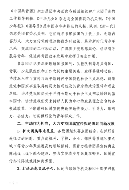 关于进一步加强《中国青年报》等团属宣传舆论阵地建设的通知