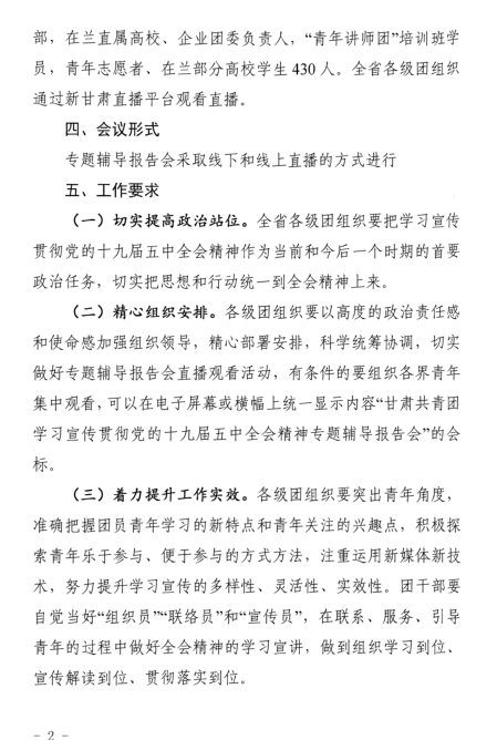 关于举办学习宣传贯彻党的十九届五中全会精神专题辅导报告会的通知
