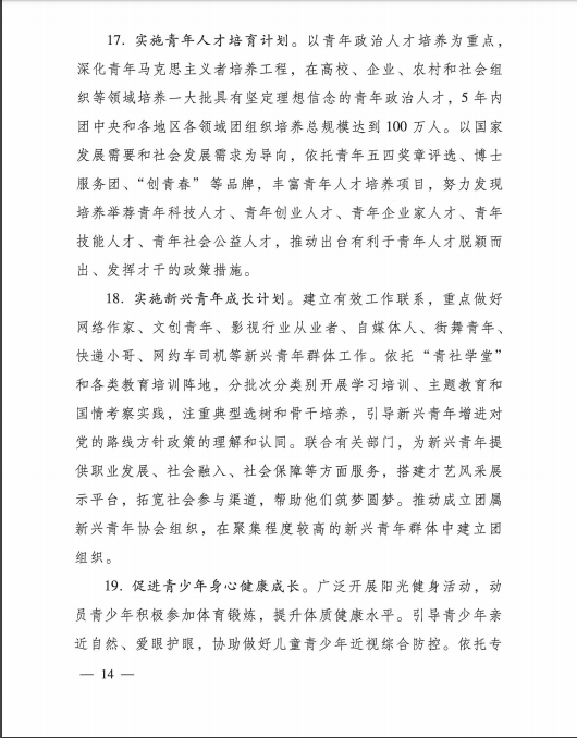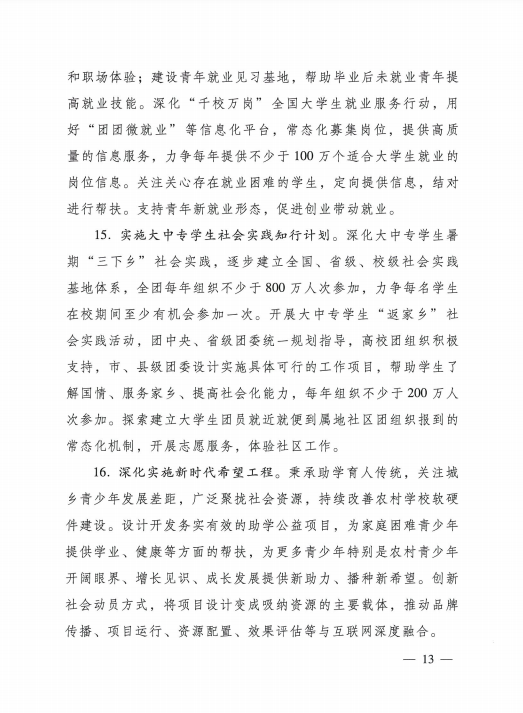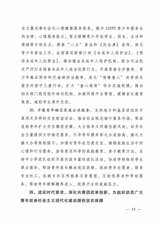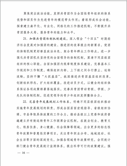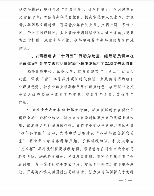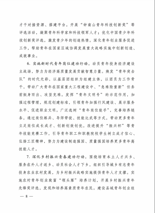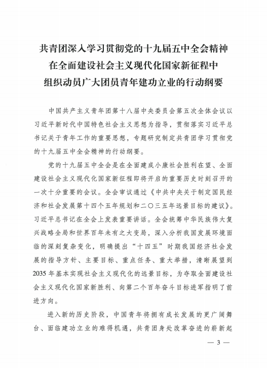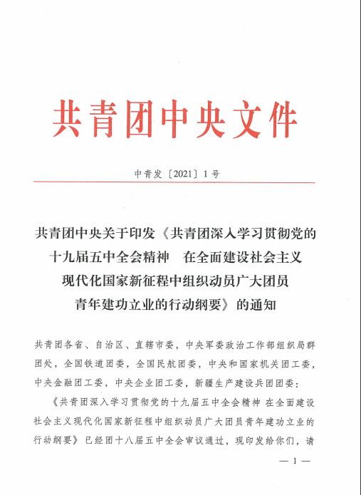 共青团中央关于印发《共青团深入 贯彻党的十九届五中全会精神在全面建设社会主义现代化国家新征程中组织动员广大团员青年建功立业发的行动刚要》的通知