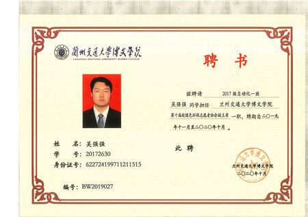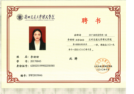 共青团兰州交通大学博文学院委员会2019-2020年度学生干部聘任名单