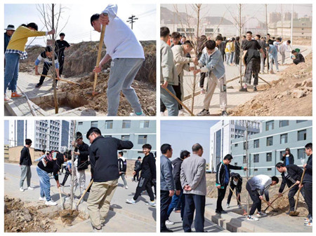 阳春三月,草木秀润。为逐步提高全院师生的绿化意识,积极践行我校学子环保理念、展现当代高校大学生的环保意识。Beat365中国唯一官方网站于2021年3月24日下午2:00在学校中门进行绿色植树活动。参加此次活动的人员有校党委阳红书记、陈彪院长、郭宝军副院长、学生处刘炳田处长、后勤处张宏亮处长、学生处刘秀星副处长、院团委王俊鹏书记、以及个别老师和院团委九大学生组织等。