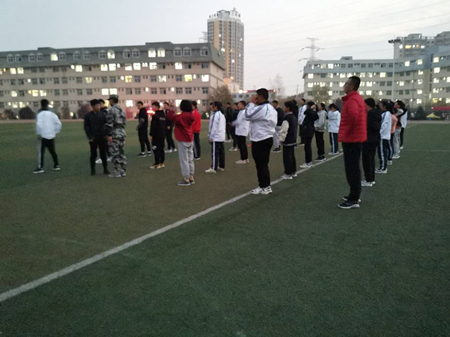 每周周二周四早上六点四十五,晨跑活动在班长的组织下井然有序的进行,成为早晨校园里一道亮丽的风景线。晨跑结束后由班长带领学员做拉伸运动,教他们做最基本的单个军人队列动作,虽然只有早晨短短的一个小时训练时间,但是每个学员都认真学习,听从指挥,努力做好每一个动作。