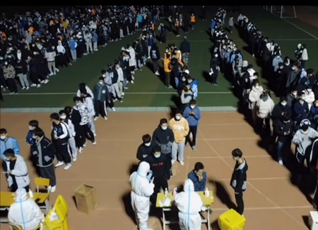 刺骨的寒风在每一个人的身上肆虐,操场上的人也在瑟瑟发抖。我校青年志愿者协会在第三次核酸检测中不畏寒冷,组织所有的同学们保持着安全距离。在做核酸的“白衣天使”也在寒风中坚持,每一次的扫健康码,每一次的的咽拭子,都代表了他们对于自己工作的肯定,在白衣天使需要移动时,我们总会在第一时间去帮她们移动采集点,之后再认真的进行消毒,做好我们自身的防护,我们穿着志愿者会服不停歇,不懈怠。我们也服从校领导的安排,争取把这一次的活动做完美。在活动中同学们排成s型,一个接着一个有序的进行。同舟共济情更深,守望相助意更切。在这场战“疫”中,“白衣天使”和志愿者们忙碌的身影,是疫情防控中最靓丽的“风景线”。他们在疫情防控最前线发挥着战斗堡垒和先锋模范作用,真正用实际行动诠释了志愿服务的精神内涵,展现了团员青年践行青春使命、冲锋在前、勇于奉献的担当作为。寒风也把时间一点一滴的吹走,这一次的核酸检测也接近了尾声,我们只想要表达我们对于“白衣天使”的倾佩。从晚上十一点开始到早上六点多结束,在活动中看到一个接着一个的人做完核酸。我们志愿者也有了极大的满足感。.