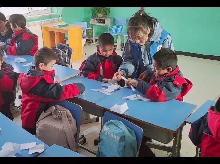 熟悉的毛笔握法总是要很小心缓慢才能写好每个字。也会因为自己折出来的折纸和我们志愿者折出来的不太一样而沮丧。但是在我们志愿者的耐心的教习下他们最终还是能静下心来专注于他们所感兴趣的学习中去。最终这次支教活动在这种认真又安静的氛围中圆满结束。