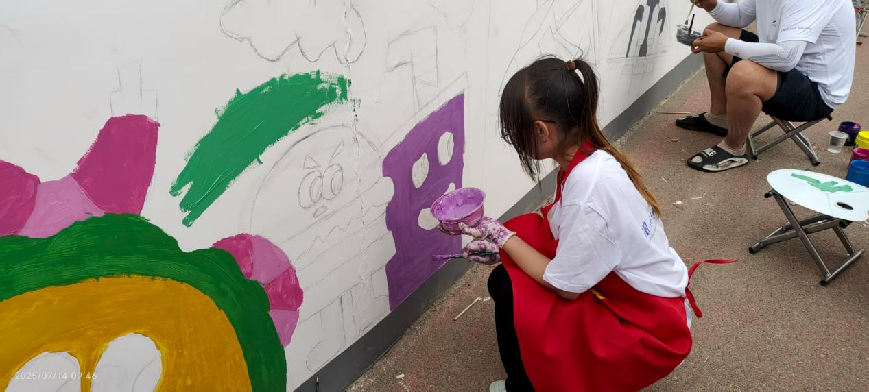 当最后一抹颜料在暮色中干透,1.2公里的防浪墙已不仅是防洪的“硬防线”,更是讲述生态故事的“软载体”。从“七彩神鹿”到“沙漠热气球”,从墙体绘画到师生们的签名承诺,每一笔都写满了青年一代对“生态保护”的理解与担当。