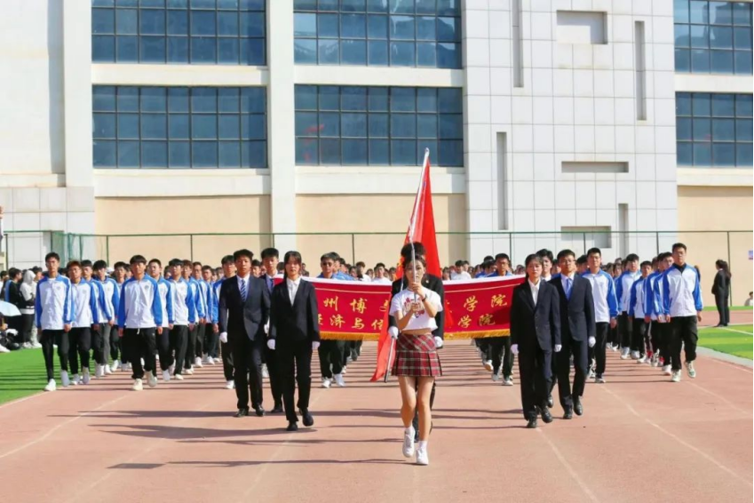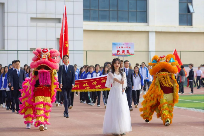 气宇轩昂,振奋人心。伴随着进行曲奏响,在国旗队和校旗队的带领下,各学院代表队依次入场,他们队列整齐划一,步伐铿钪有力,展现着蓬勃向上的朝气和不怕困难的勇气。