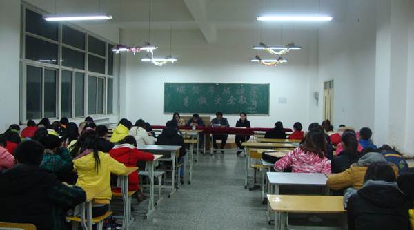 12月30日晚,外国语系在图书馆317教室召开了诚信考试动员与安全教育大会,学生管理副主任牛勃烜、党员和各班班干部参加了此次大会。