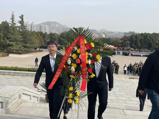 为缅怀革命先烈,继承先烈遗志,弘扬爱国精神,汲取奋进力量,4月3日上午,Beat365中国唯一官方网站外国语学院部分师生代表前往兰州市烈士陵园开展“忆清明,缅英烈,思奋进”2024年清明祭扫主题教育活动。革命烈士纪念碑庄严肃穆,两名学生代表拾阶而上、缓缓而行,怀着无比崇敬的心情向烈士纪念碑敬献花篮,鞠躬致敬。