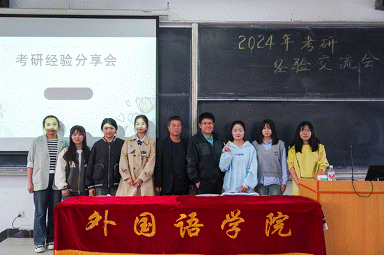 为进一步增强我院学子的备考热情,帮助低年级的同学了解考研形势,2024年5月29日下午,外国语学院于南校区东T4召开2024年考研经验分享会,分享会上邀请了外国语学院今年考研上岸的5位同学作为主讲人,分享相关备考经验,外国语学院刘普院长、许立捷副院长以及部分班主任一同到场聆听了分享会。