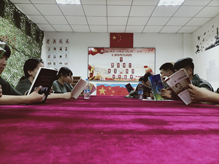 八一学社不仅在体能和军事技术上要求社员,同时对社员的学习及课外知识的积累同等重视,在此次阅读活动中,同学们静心阅读,而后畅所欲言,把自己喜欢的书籍或期刊分享给大家,不光增加了知识面,还增进了社员间的友谊,收获颇丰。