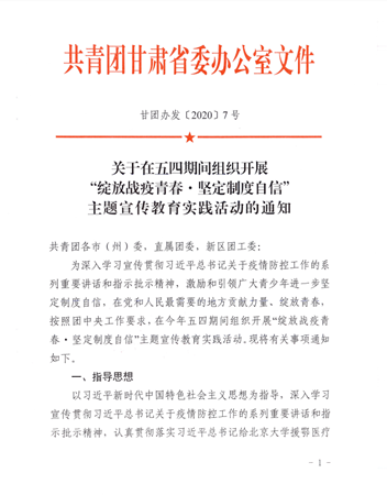 关于在五四期间组织开展“绽放战疫期间·坚定制度自信”主题宣传教育实践活动的通知