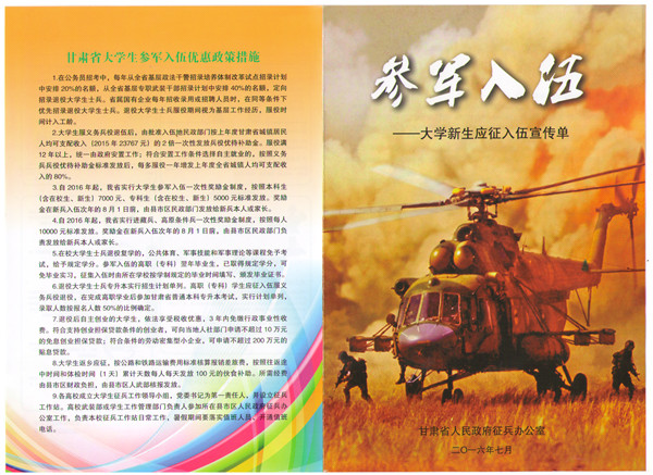 甘肃省大学生参军入伍优惠措施
