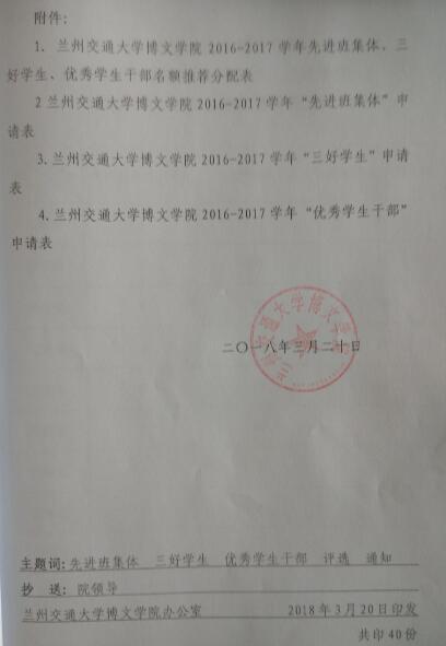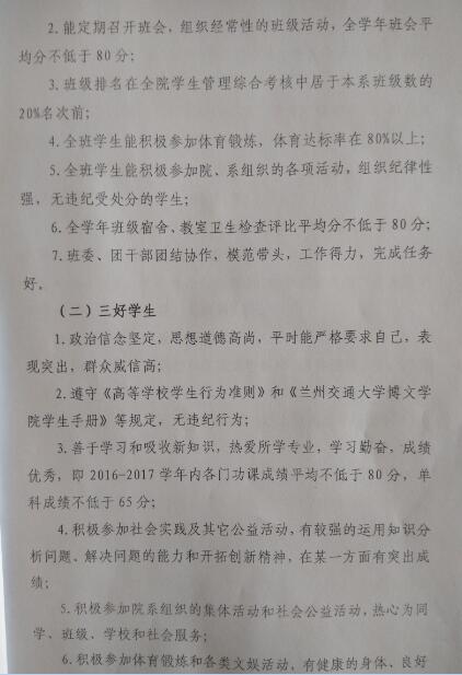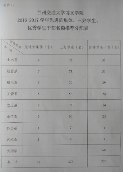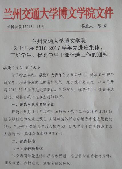 兰州交通大学博文学院关于开展2016-2017学年先进班集体、三好学生、优秀学生干部评选工作的通知