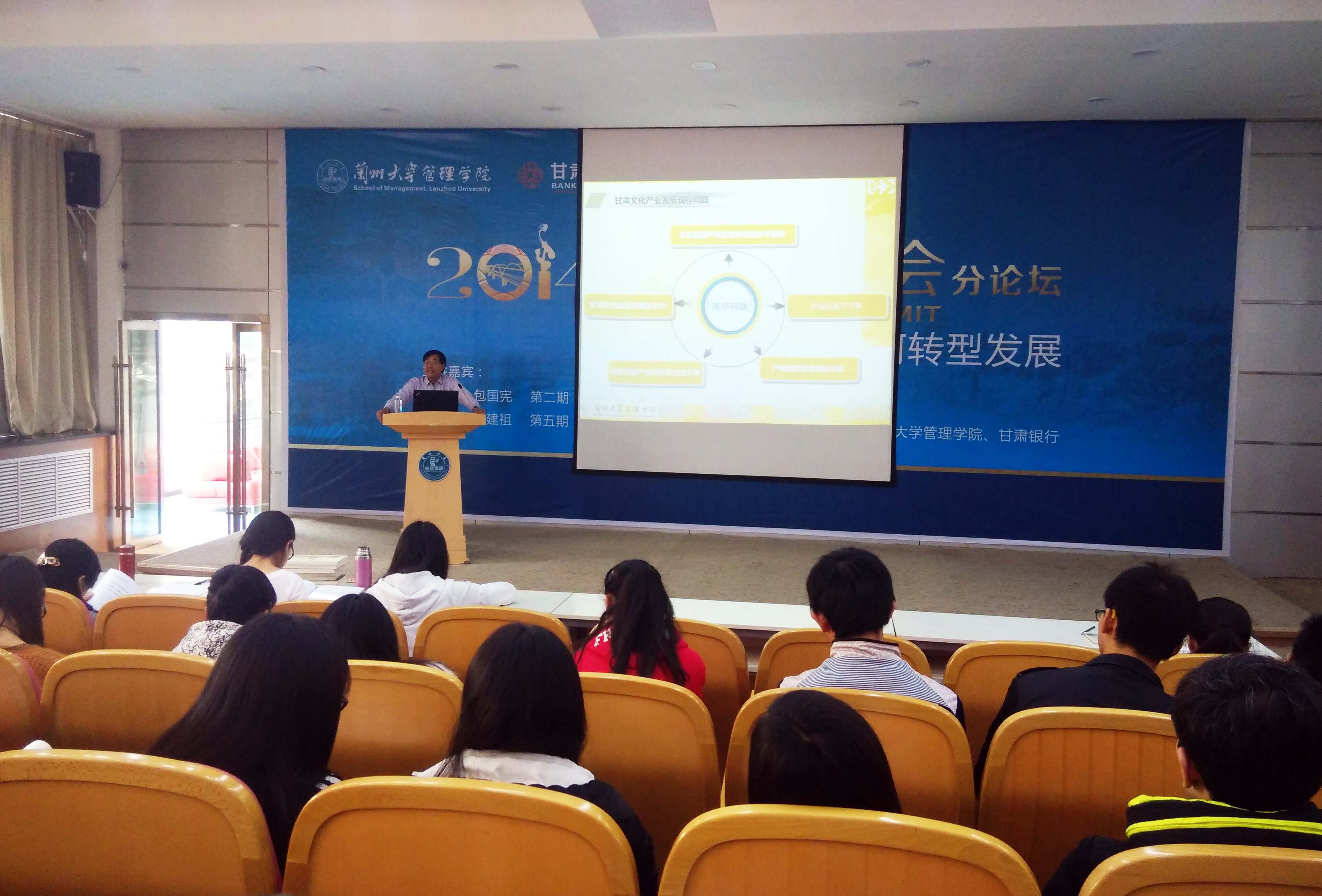 2015年11月28日下午,兰州交通大学博文学院艺术设计系副主任秦维财同志组织艺术设计系师生参加了在兰州大学举办的2014年金城峰会论坛分论坛——甘肃省文化产业资源与产业化发展专题报告会。本场专题报告由甘肃文化资...