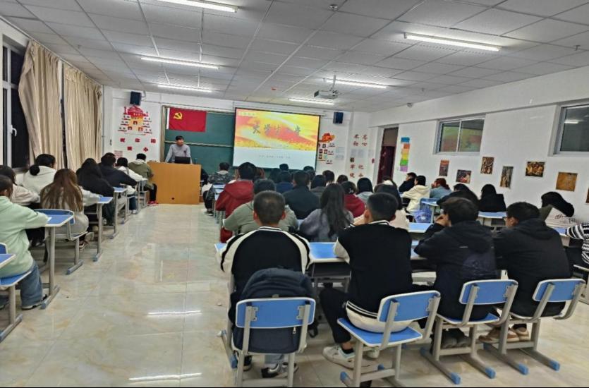 2023年10月17日晚19:30分,艺术设计学院在新校区综合教学楼1102教室开展学习“习近平新时代中国特色社会主义思想”主题教育活动。讲座由艺术设计学院直属党支部书记秦维财主讲,全体学生党员、积极分子及发展对象参加。