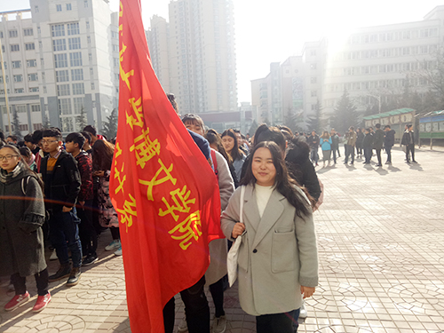 为了严肃考风考纪,加强青年大学生的诚信教育,2017年12月21日中午12:30分,兰州交通大学博文学院在南校区教学楼前广场举行“诚信考试”动员大会暨千人签名活动。我系由辅导员王振伊老师组织,16级艺术设计系广告班与工艺美术班学生携带系旗门旗参加了本次活动。
