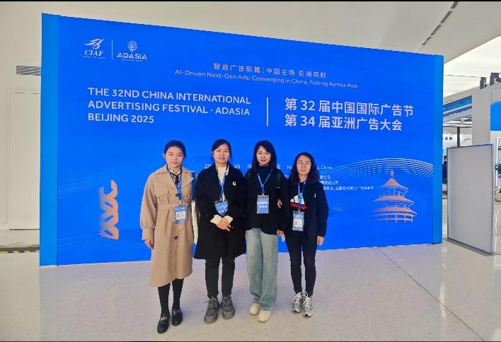 202510月23日至26日,第32届中国国际广告节暨第34届亚洲广告大会在北京隆重举办。我院副院长赵海霞带队,教研室主任宿玫,专任教师蔡帛真张锦共同参会,深度融入行业交流,为学院教学与学科发展汲取前沿养分。