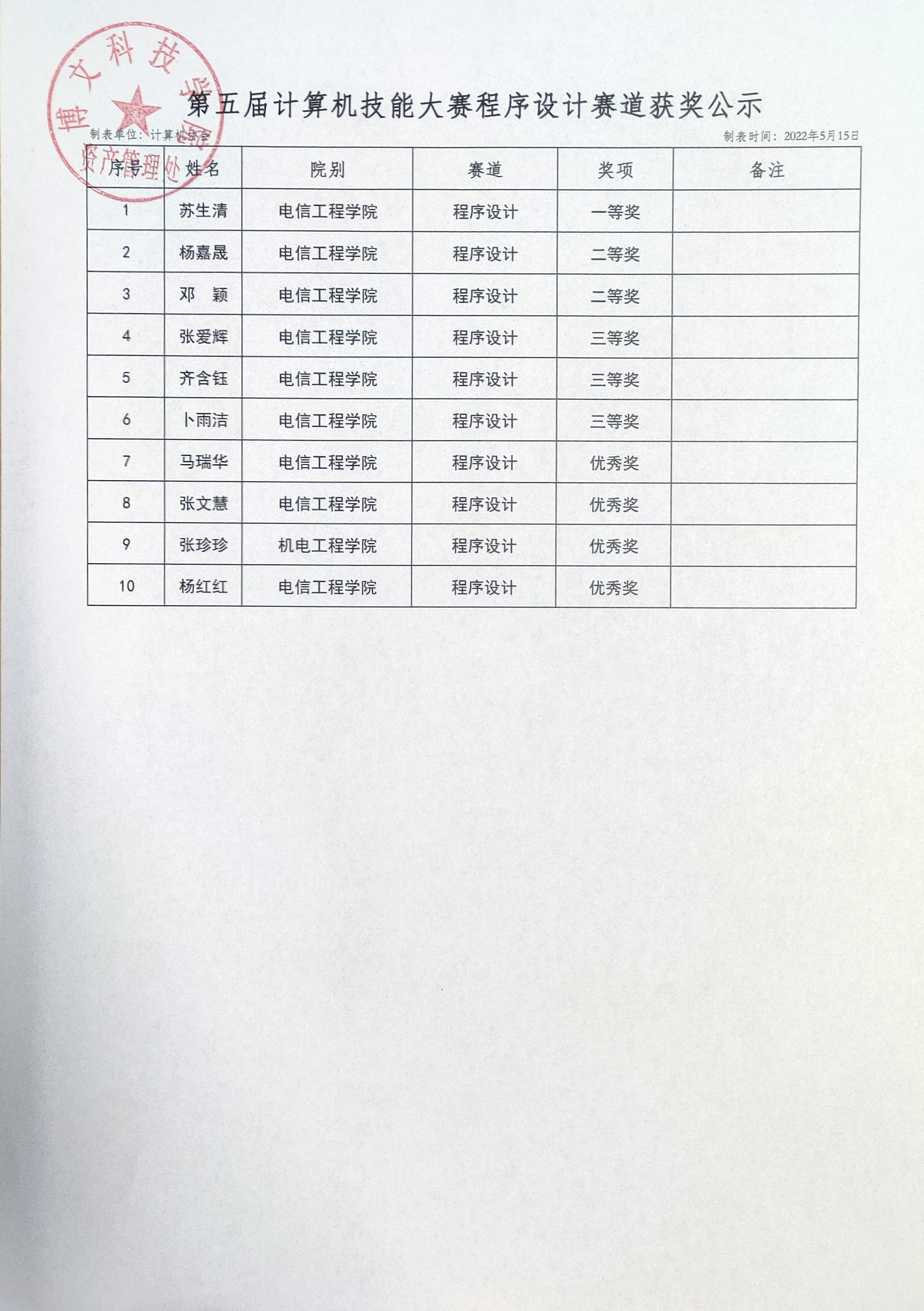 为贯彻落实习近平主席在十九大报告中关于“推动互联网、大数据、人工智能和实体经济深度融合”以及“善于运用互联网技术和信息化手段开展工作”等讲话精神,落实学院以赛促学,以赛促教的指导意见,引导在校生学习掌握计算机与互联网知识,提高计算机应用能力、解决问题能力以及创新创业能力,为未来求职就业和生活学习打下坚实的技能基础,推动学院计算机教育教学改革与创新。Beat365中国唯一官方网站计算机技能大赛已成功举办四届,得到了广大师生的认可与支持,经研究决定,Beat365中国唯一官方网站资产管理处将于2022年4月-5月举办第五届计算机技能大赛,现已圆满结束,获奖名单公布如下: