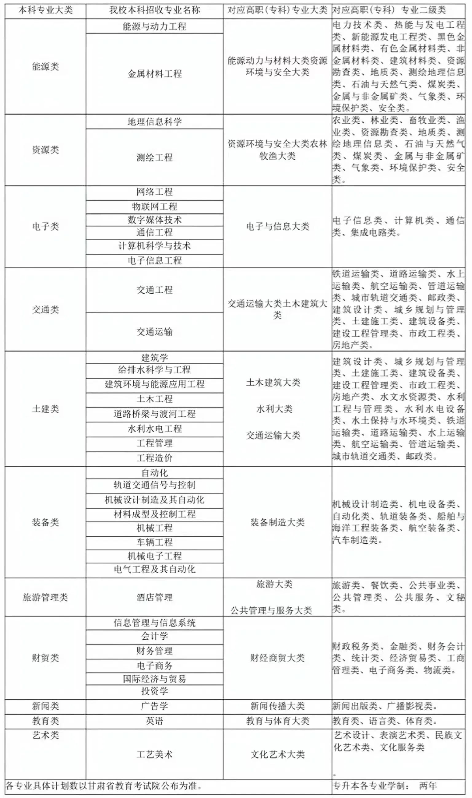 2024年高职(专科)升本科招生施行大类招生录取原则,我校共有11个专业大类38个本科专业招收“专升本”学生。招生专业及对应高职(专科)专业大类详见下表: