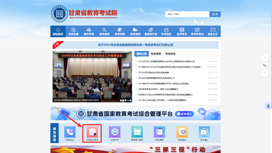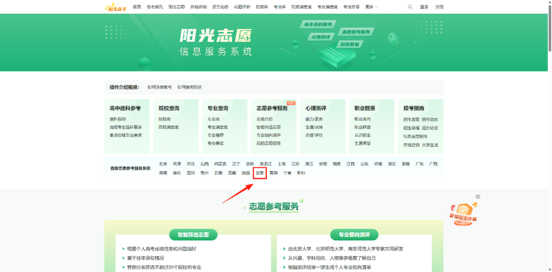 点击“省级志愿参考服务系统-甘肃”可跳转至“甘肃阳光高考信息平台”使用志愿填报辅助系统。